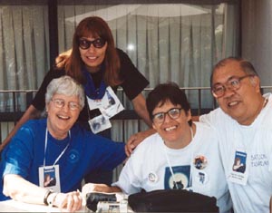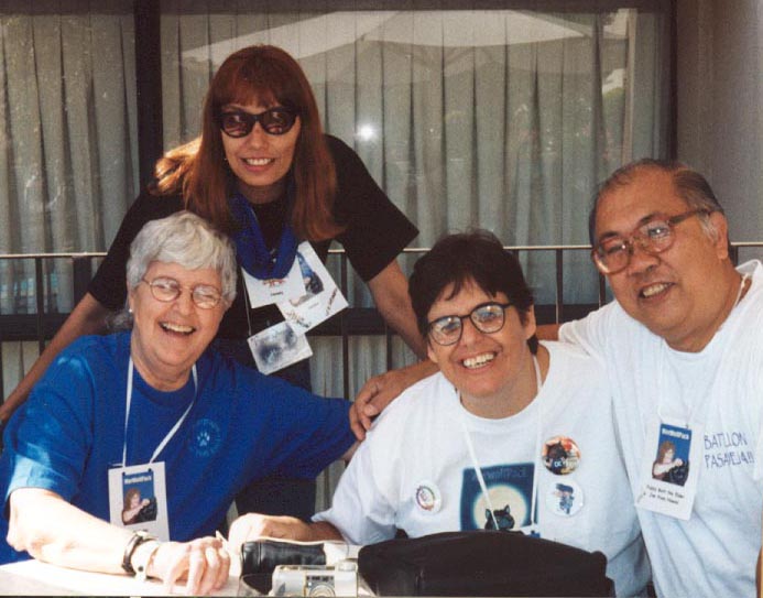 Susan Mullarky, Honey, Lucia and FuzzyButt the Elder at the 2001 Xena convention in Pasadena, CA.