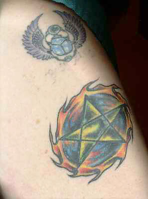 Here is a pic of the tattoos on my left upper arm. They look a bit squished because I used my scanner to take the picture. Unorthodox, yes. but it did work. I have no images of the one on my leg, as it doesn't look nearly as pretty. : ) wttw, |